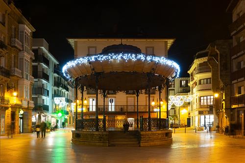 Los edificios de esta plaza son representativas del desarrollo del a villa. Junto a edificios mas recientes, algunos del estilo neovasco, esta la casa Makatza, uno de los edificios más antiguos construida en el siglo XV-XVI conserva su aspecto de fortaleza y casa torre.