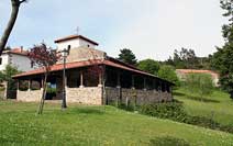 La antigüedad que se le atribuye al edificio la justifican varios elementos. En primer lugar, el acceso, un paso estrecho sito a los pies de la nave, apuntado y abocinado con jambas lisas; dos pares de columnas acodadas y tambin lisas que llevan sus correspondientes capiteles; y arco de cierre igualmente liso, como las tres arquivoltas que lo envuelven. Una chambrana o guardapolvos exterior lo recerca todo. Este elemento, que al final es casi circular, lleva decoración de bolas.