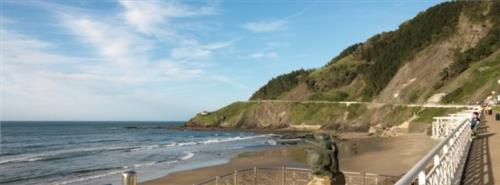 Amplia y urbana, la playa situada junto a la desembocadura del río Deba y rodeada por un paseo marítimo es una de las más concurridas de la zona.