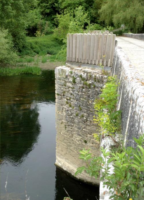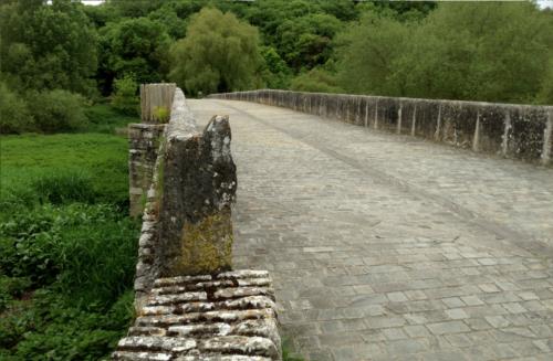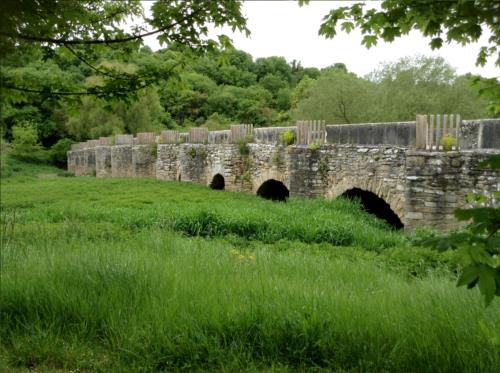 Los 6 primeros arcos, los más alejados del pueblo, son los más anchos. Posiblemente se trate del primer momento constructivo, cabiendo la posibilidad de que el puente original tuviera únicamente estos 6 arcos. Los 5 arcos siguientes son posteriores y los dos últimos son los cronológicamente más nuevos. A lo largo de su longitud y a ambos lados, se encuentra un muro adosado para prevenir caídas llamado pretil. Son los únicos elementos tallados y pertenecen a la última reforma realizada posterior a la rotura que tuvo lugar en 1915.