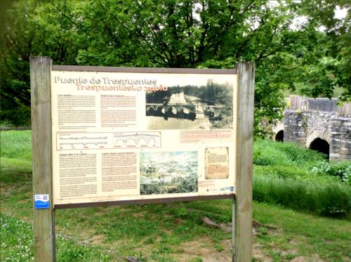 Considerado Bien de Interés Cultural por el Gobierno Vasco, este puente romano sobre el río Zadorra es una de las construcciones más significativas del municipio. No existen estudios que demuestren su origen, sin embargo, se considera romano por su proximidad al yacimiento arqueológico de Iruña-Veleia. Las partes actualmente visibles responden a cánones más actuales, posiblemente posteriores al s. XVI. A la presencia del pueblo de debe el nombre del pueblo desde la época medieval: Trespuentes, del latín transpontem (tras el puente).