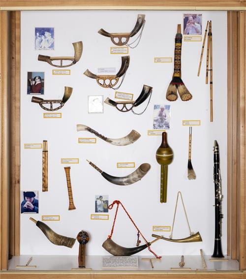 En la exposición hay instrumentos musicales y juguetes de todo el mundo y en el origen del sonido, se han clasificado por el sistema de producción. Para completar todo esto, hay fotos de los instrumentos expuestos, en grupos e individuales.